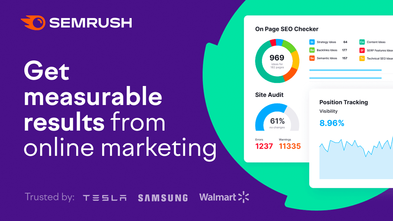 Stop losing customers to competitors who dominate search results. Semrush's 50+ marketing tools help you outrank the competition and get found online. Get your 14-day free trial and see the power yourself. No credit card required to start exploring all 50+ tools.